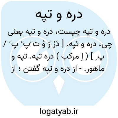 دره و تپه. [ دَرْ رَ وُ ت َپ ْ پ َ / پ ِ ] ( اِ مرکب ) دره تپه. تپه و ماهور.