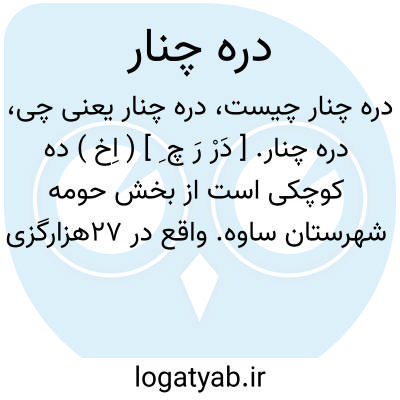 دره چنار. [ دَرْ رَ چ ِ ] ( اِخ ) ده کوچکی است از بخش حومه شهرستان ساوه. واقع در 27هزارگزی جنوب باختری ساوه. ( از فرهنگ جغرافیایی ایران ج 1 ).