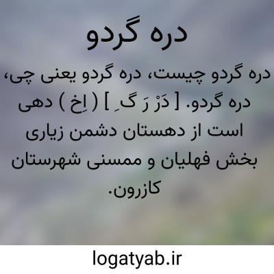 دره گردو. [ دَرْ رَ گ ِ ] ( اِخ ) دهی است از دهستان دشمن زیاری بخش فهلیان و ممسنی شهرستان کازرون. واقع در 49 هزارگزی جنوب فهلیان و 25هزارگزی راه شوسه کازرون به فهلیان، با 123 تن سکنه. آب آن از چشمه و راه آن مالرو است. ( از فرهنگ جغرافیایی ایران ج 7 ).