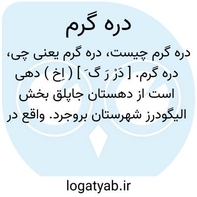 دره گرم. [ دَرْ رَ گ َ ] ( اِخ ) ده کوچکی است از دهستان کیار بخش بروجن شهرستان شهرکرد. واقع در 44هزارگزی شمال باختری بروجن و 4هزارگزی راه شلمزار به بروجن. ( از فرهنگ جغرافیایی ایران ج 10 ).