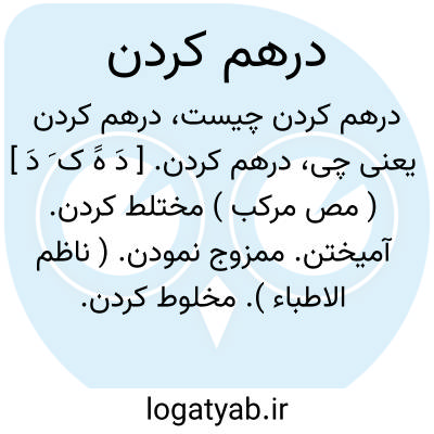 درهم کردن. [ دَ هََ ک َ دَ ] ( مص مرکب ) مختلط کردن. آمیختن. ممزوج نمودن. ( ناظم الاطباء ). مخلوط کردن. ممزوج کردن. خلط کردن. مزج کردن. ( یادداشت مرحوم دهخدا ). || پریشان کردن. آشفته خاطر ساختن: از من دستوری بایست به آمدن و اگر دادمی آنگاه بیامدی که روا نیست مردمان را از حالت خویش درهم کردن. ( تاریخ بیهقی چ ادیب ص 525 ). || فروگذاشتن. بستن و کنار گذاشتن. درهم پیچیدن و به یکسو نهادن: