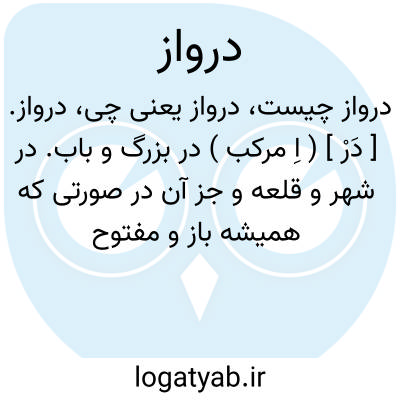 درواز. [ دَرْ ] ( اِ مرکب ) در بزرگ و باب. در شهر و قلعه و جز آن در صورتی که همیشه باز و مفتوح باشد. ( ناظم الاطباء ):