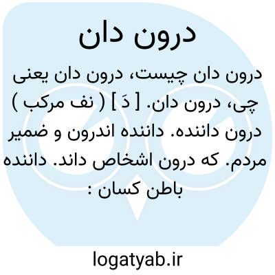 درون دان. [ دَ ] ( نف مرکب ) درون داننده. داننده اندرون و ضمیر مردم. که درون اشخاص داند. داننده باطن کسان: