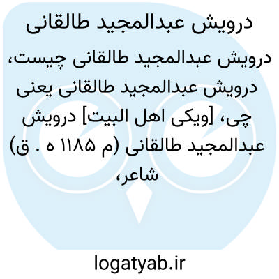 [ویکی اهل البیت] درویش عبدالمجید طالقانی (م 1185 ه. ق) شاعر، عارف و بزرگترین خوشنویس خط شکسته در تاریخ خوشنویسی ایران است.