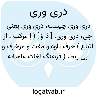 دری وری. [ دَ وَ ] ( اِ مرکب، از اتباع ) حرف یاوه و مفت و مزخرف و بی ربط. ( فرهنگ لغات عامیانه ). هذیان. چرند و پرند. سخن بیهوده. لاطائل. ( یادداشت مرحوم دهخدا ). سخن بی سروته.