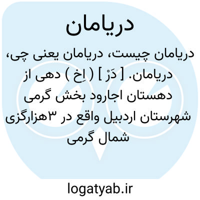 دریامان. [ دَرْ ] ( اِخ ) دهی از دهستان اجارود بخش گرمی شهرستان اردبیل واقع در 3هزارگزی شمال گرمی و 3هزارگزی به شوسه گرمی با 128 تن سکنه آب آن از چشمه و راه آن مالرو است. ( از فرهنگ جغرافیایی ایران ج 4 ).