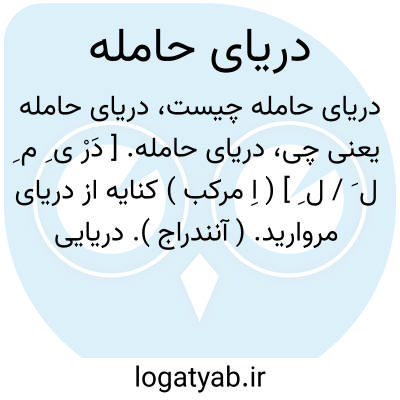 دریای حامله. [ دَرْ ی ِ م ِ ل َ / ل ِ ] ( اِ مرکب ) کنایه از دریای مروارید. ( آنندراج ). دریایی که در آن صید مروارید می کنند. ( ناظم الاطباء ). || کنایه ازشراب بواسطه نشاطی که در اوست. ( آنندراج ) ( از ناظم الاطباء ). دریای سائله. و رجوع به دریای سائله شود.