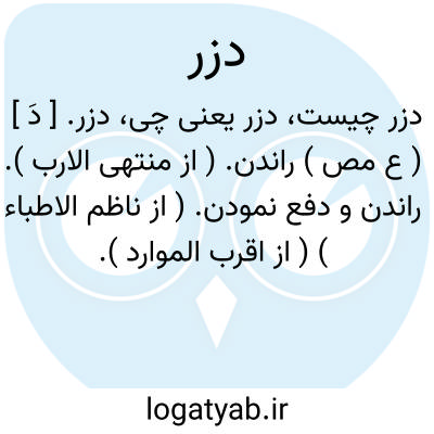دزر. [ دَ ] ( ع مص ) راندن. ( از منتهی الارب ). راندن و دفع نمودن. ( از ناظم الاطباء ) ( از اقرب الموارد ).