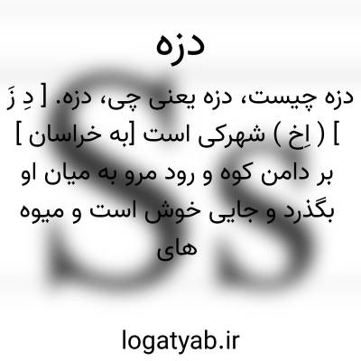 دزه. [ دِ زَ ] ( اِخ ) شهرکی است [به خراسان ] بر دامن کوه و رود مرو به میان او بگذرد و جایی خوش است و میوه های بسیار. ( حدود العالم ).