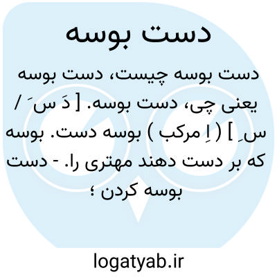 دست بوسه. [ دَ س َ / س ِ ] ( اِ مرکب ) بوسه دست. بوسه که بر دست دهند مهتری را. - دست بوسه کردن؛ بوسیدن دست. خدمت کردن. کهتری و کرنش کردن: بلیس کرد ورا دستبوسه و شاباش نشست پیش وی اندر بحرمت و تعظیم.سوزنی.
