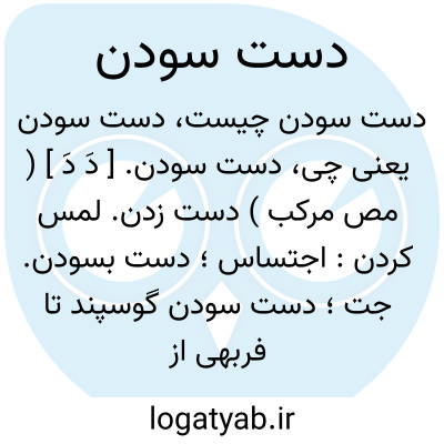 دست سودن. [ دَ دَ ] ( مص مرکب ) دست زدن. لمس کردن: اجتساس؛ دست بسودن. جت؛ دست سودن گوسپند تا فربهی از لاغری آن معلوم شود. ( از منتهی الارب ). برمجیدن. || در بیت ذیل محتمل است دست سودن به معنی تصافح باشد؟ ( یادداشت مرحوم دهخدا ). دست در دست انداختن: