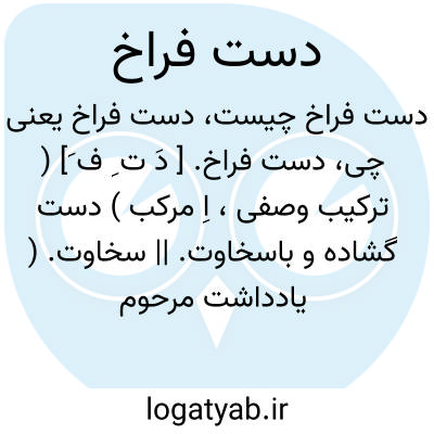 دست فراخ. [ دَف َ ] ( ص مرکب ) باسخاوت. سخی. بخشنده: کس از او [ پیغمبر صلوات اﷲ علیه ] خوش خوی تر ندید دست فراخ تر و دلیرتر از وی کس ندید. ( ترجمه طبری بلعمی ).