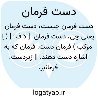 دست فرمان. [ دَ ف َ ] ( اِ مرکب ) فرمان دست. فرمان که به اشاره دست دهند. || زیردست. فرمانبر. آنکه به فرمان کسی کار کند: