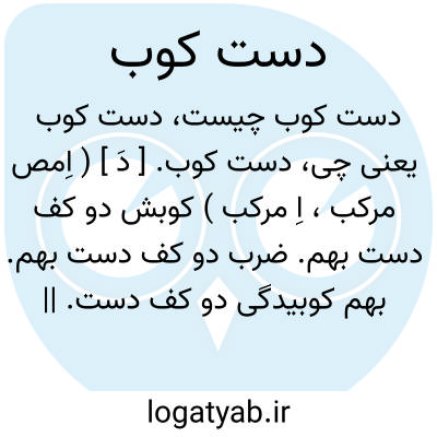 دست کوب. [ دَ ] ( اِمص مرکب، اِ مرکب ) کوبش دو کف دست بهم. ضرب دو کف دست بهم. بهم کوبیدگی دو کف دست. || ضربت دست:
