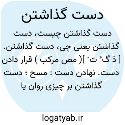 دست گذاشتن. [ دَ گ ُ ت َ ]( مص مرکب ) قرار دادن دست. نهادن دست: مسح؛ دست گذاشتن بر چیزی روان یا آلوده جهت دور کردن آلودگی آن.
