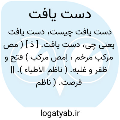 دست یافت. [ دَ ] ( مص مرکب مرخم، اِمص مرکب ) فتح و ظفر و غلبه. ( ناظم الاطباء ). || فرصت. ( ناظم الاطباء ). و رجوع به دست یافتن شود. || ( ن مف مرکب ) دست یافته. مقهور. مغلوب: این صورت سمج و جسم خبیث کهتر که دست یافت عناصر نیم کار گردون است از کثرت آفات... اکرام را ابرام نمی نماید. ( منشآت خاقانی چ دانشگاه ص 243 ).