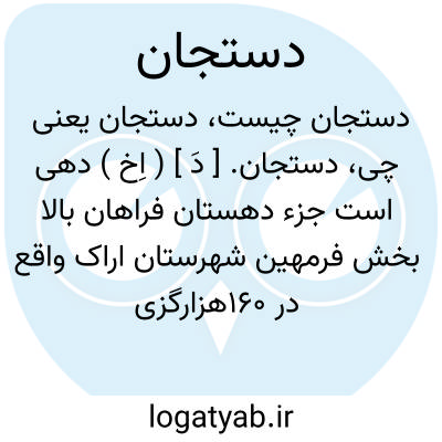 دستجان. [ دَ ] ( اِخ ) دهی است جزء دهستان فراهان بالا بخش فرمهین شهرستان اراک واقع در 160هزارگزی شمال باختری فرمهین و 10هزارگزی راه مالرو عمومی. با 607 تن سکنه. آب آن از قنات و راه آن مالرو است و از فرمهین میتوان اتومبیل برد. ( از فرهنگ جغرافیائی ایران ج 2 ).