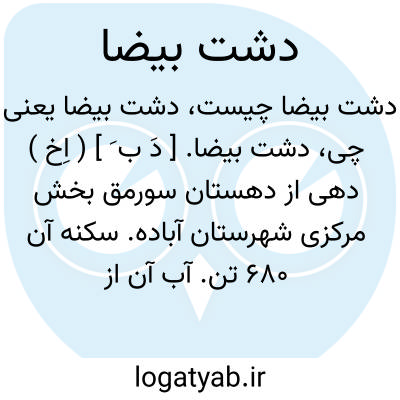 دشت بیضا. [ دَ ب َ ] ( اِخ ) دهی از دهستان سورمق بخش مرکزی شهرستان آباده. سکنه آن 680 تن. آب آن از قنات. محصول آنجا غلات، پنبه، بادام و انگور. ( از فرهنگ جغرافیائی ایران ج 7 ).