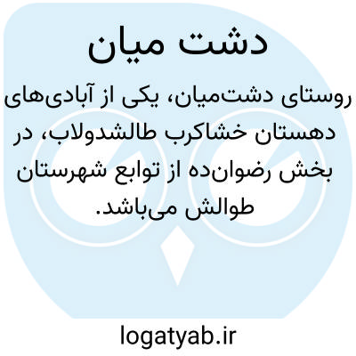 روستای دَشتمیان، یکی از آبادیهای دهستان خشاکُربِ طالشدولاب، در بخش رضوانده از توابع شهرستان طوالش میباشد. این روستا بر اساس آمارهای فرهنگی و جغرافیایی، دارای ۷۳۸ نفر جمعیت است که در این ناحیه سکونت دارند. منبع اصلی تأمین آب این منطقه، رودخانهی چافرود است که در توسعهی کشاورزی و اقتصاد محلی نقش اساسی ایفا میکند. کشاورزی بهعنوان پایهی معیشت ساکنان، محصولات متنوعی را شامل میشود. محصولات عمدهی این روستا شامل غلات، گردو، فرآوردههای لبنی و عسل است که علاوه بر تأمین نیازهای داخلی، در چرخهی اقتصادی منطقه نیز جایگاه ویژهای دارد. این تنوع تولیدی، نشاندهندهی ظرفیتهای طبیعی و اقلیمی دشتمیان است.