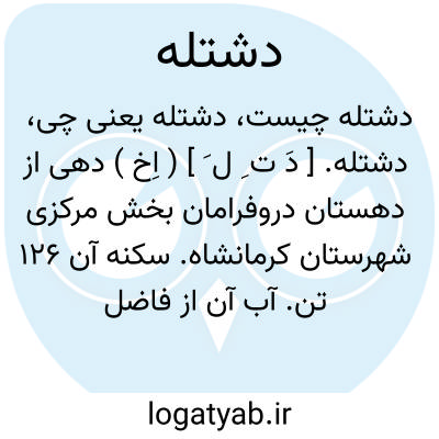 دشتله. [ دَ ت ِ ل َ ] ( اِخ ) دهی از دهستان دروفرامان بخش مرکزی شهرستان کرمانشاه. سکنه آن 126 تن. آب آن از فاضل آب سردشتله و قنات. محصول آنجا غلات، حبوب، صیفی و لبنیات است. ( از فرهنگ جغرافیایی ایران ج 5 ).