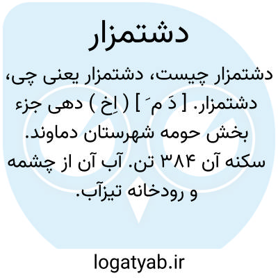 دشتمزار. [ دَ م َ ] ( اِخ ) دهی جزء بخش حومه شهرستان دماوند. سکنه آن 384 تن. آب آن از چشمه و رودخانه تیزآب. محصول آنجا غلات، سیب زمینی، بنشن و میوه. این ده معدن زغال سنگ دارد که استخراج میشود. و نیز دارای آب معدنی است. ( از فرهنگ جغرافیایی ایران ج 1 ).