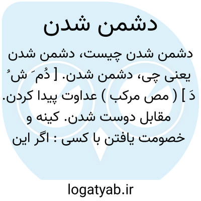 دشمن شدن. [ دُم َ ش ُ دَ ] ( مص مرکب ) عداوت پیدا کردن. مقابل دوست شدن. کینه و خصومت یافتن با کسی: اگر این بنده آن شرایط درخواهد تمام... همه این خدمتکاران بر من بیرون آیند و دشمن من شوندی. ( تاریخ بیهقی ).