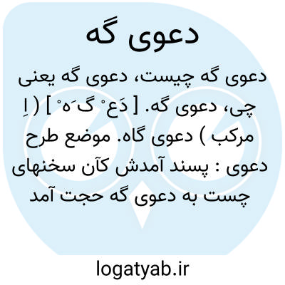 دعوی گه. [ دَع ْ گ َه ْ ] ( اِ مرکب ) دعوی گاه. موضع طرح دعوی:
