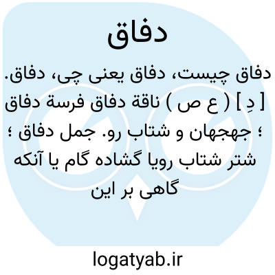 دفاق. [ دِ ] ( ع ص ) ناقة دفاق فرسة دفاق؛ جهجهان و شتاب رو. جمل دفاق؛ شتر شتاب رویا گشاده گام یا آنکه گاهی بر این پهلو رود و گاهی بر آن پهلو. ( منتهی الارب ). ماده شتر سریع. و جمل دفاق؛شتر که بصورت «دفقی » راه رود، و آنرا بضم اول نیز خوانده اند. ( از اقرب الموارد ). و رجوع به دفقی شود.