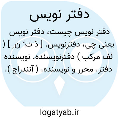 دفترنویس. [ دَ ت َ ن ِ ] ( نف مرکب ) دفترنویسنده. نویسنده دفتر. محرر و نویسنده. ( آنندراج ). میرزا و منشی. || محاسب. حساب نویس. ( ناظم الاطباء ).