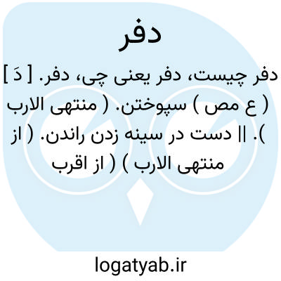 دفر. [ دَ ] ( ع اِ ) گند. ( منتهی الارب ). بوی بغل. ( دهار ): دفراً له؛ گند باداو را. ( از اقرب الموارد ). دفراً دافراً لما یجی به فلان؛ برای تقبیح کاری گویند. ( از اقرب الموارد ).