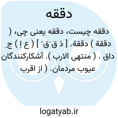 ( دققة ) دققة. [ دَ ق َق َ ] ( ع اِ ) ج ِ داق. ( منتهی الارب ). آشکارکنندگان عیوب مردمان. ( از اقرب الموارد ). رجوع به داق شود.