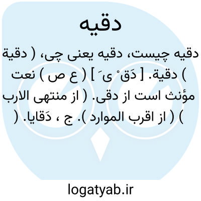 ( دقیة ) دقیة. [ دَق ْ ی َ ] ( ع ص ) نعت مؤنث است از دقی. ( از منتهی الارب ) ( از اقرب الموارد ). ج، دَقایا. ( اقرب الموارد ). دَقْوی ̍. رجوع به دقی و دقوی ̍ شود.