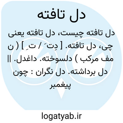 دل تافته. [ دِت َ / ت ِ ] ( ن مف مرکب ) دلسوخته. داغدل. || دل برداشته. دل نگران: چون پیغمبر صلی اﷲ علیه و سلم به خانه اندر دلتنگ شدی به کوه حرا رفتی وهمی گشتی و به شب به خانه آمدی دل تافته، و از این حال خدیجه سخت اندوهگین بودی. ( ترجمه طبری بلعمی ).