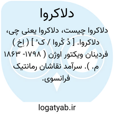 دلاکروا. [ دُ کْروا / ک ُ ] ( اِخ ) فردینان ویکتور اوژن ( 1798- 1863 م. ). سرآمد نقاشان رمانتیک فرانسوی. وی در «بوزار» پاریس تحصیل کرد، اما بزودی بر ضد شیوه های معمول در نقاشی قیام نمود. اولین نقاشی بود که بدون طرح، مستقیماً با رنگ نقاشی کرد. رنگ های تندی که بکار می برد و حرکات تند و پر جوش و خروشی که در تابلوهایش دیده می شود، جدالهای هنری بسیار برانگیخت و از اینجا بود که وی رهبر نهضت رمانتیک در نقاشی فرانسه شناخته شد. در سال 1824 م. تابلو «قتل عام خیوس » او را دولت خریداری کرد. در سال 1832 م. به مراکش رفت، دو سال بعد تابلو معروف «زنان الجزایر» را به معرض نمایش گذاشت. دلاکروا جسمی ناتوان داشت اما نقاشیهای او نمودار روحی نیرومند است. ( از دایرة المعارف فارسی ).