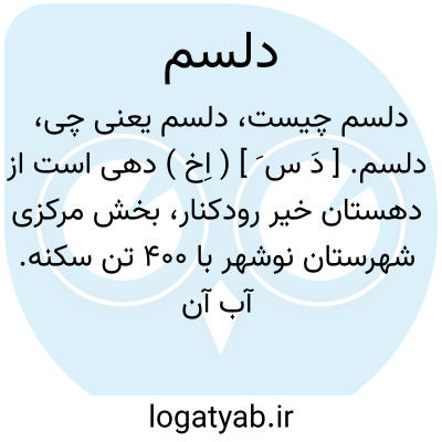 دلسم. [ دَ س َ ] ( اِخ ) دهی است از دهستان خیر رودکنار، بخش مرکزی شهرستان نوشهر با 400 تن سکنه. آب آن از چشمه و راه آن مالرو است. ( از فرهنگ جغرافیایی ایران ج 3 ).
