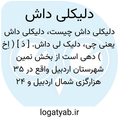 دلیک لی داش. [ دَ ] ( اِخ ) دهی است از بخش نمین شهرستان اردبیل واقع در 35 هزارگزی شمال اردبیل و 24 هزارگزی راه شوسه اردبیل به خیاو، با 197 تن سکنه. آب آن از چشمه و راه آن مالرو است. ( از فرهنگ جغرافیایی ایران ج 4 ).