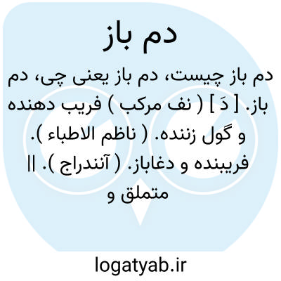 دم باز. [ دَ ] ( نف مرکب ) فریب دهنده و گول زننده. ( ناظم الاطباء ). فریبنده و دغاباز. ( آنندراج ). || متملق و چاپلوس. ( ناظم الاطباء ). چاپلوس. ( آنندراج ).
