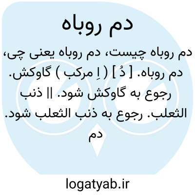 دم روباه. [ دُ ] ( اِخ ) دهی است از دهستان پایین ولایت بخش فریمان شهرستان مشهد با 275 تن سکنه، آب آن از قنات و راه آن اتومبیل رو است. ( از فرهنگ جغرافیایی ایران ج 9 ).
