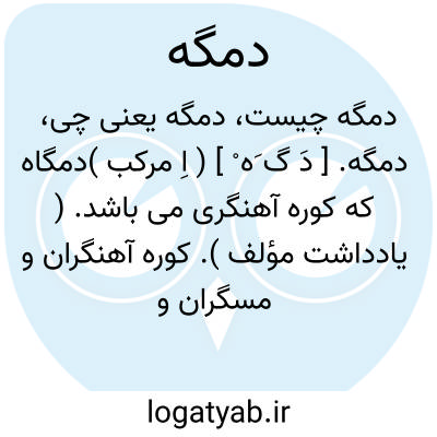 دمگه. [ دَ گ َه ْ ] ( اِ مرکب )دمگاه که کوره آهنگری می باشد. ( یادداشت مؤلف ). کوره آهنگران و مسگران و زرگران. ( فرهنگ جهانگیری ) ( از برهان ). || گلخن. تون حمام. || جای نفس که دهان باشد. ( انجمن آرا ) ( از آنندراج ):