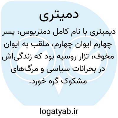 دیمیتری (Dmitry) با نام کامل دمتریوس، پسر چهارم ایوان چهارم، ملقب به ایوان مخوف، تزار روسیه بود که زندگیاش در بحرانات سیاسی و مرگهای مشکوک گره خورد. پس از درگذشت ایوان مخوف در سال ۱۵۸۴ میلادی، برادر ناتنیاش، فیودور اول، به سلطنت رسید؛ با این حال، قدرت واقعی در دست بوریس گادونوف، داماد ایوان و فردی بانفوذ در دربار، متمرکز بود. سرنوشت دیمیتری در سال ۱۵۹۱ میلادی، در سن کم، رقم خورد؛ او به طرز مرموزی در اوگلیچ درگذشت؛ مرگی که بسیاری آن را به دستور مستقیم بوریس گادونوف برای حذف رقیب بالقوه سلطنت میدانستند. این واقعه، هرچند به پایان موقت سلسلهای از خط مستقیم سلطنتی انجامید، اما زمینهساز یکی از پرآشوبترین دورههای تاریخ روسیه، موسوم به دوران آشوب (Time of Troubles)، شد.