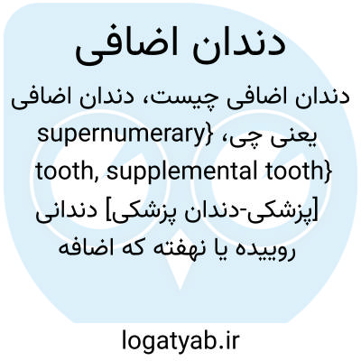 {supernumerary tooth, supplemental tooth} [پزشکی-دندان پزشکی] دندانی روییده یا نهفته که اضافه بر تعداد طبیعی دندان هاست