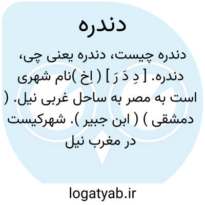 دندره. [ دِ دَ رَ ] ( اِخ )نام شهری است به مصر به ساحل غربی نیل. ( دمشقی ) ( ابن جبیر ). شهرکیست در مغرب نیل از نواحی صعید در طرف پایین قوص با بوستانهای بسیار. ( از معجم البلدان ).