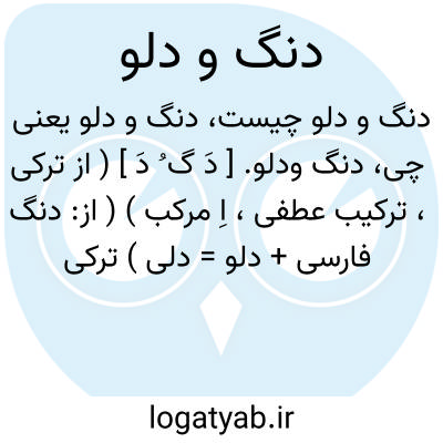 دنگ ودلو. [ دَ گ ُ دَ ] ( از ترکی، ترکیب عطفی، اِ مرکب ) ( از: دنگ فارسی + دلو = دلی ) ترکی دیوانه. ( یادداشت مؤلف ). به ترکی ابله و سفیه و دیوانه. ( لغت محلی شوشتر، نسخه خطی کتابخانه مؤلف ):