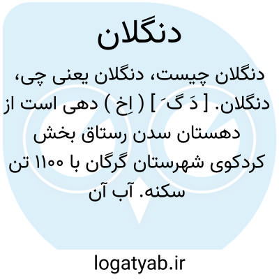 دنگلان. [ دَ گ َ ] ( اِخ ) دهی است از دهستان سدن رستاق بخش کردکوی شهرستان گرگان با 1100 تن سکنه. آب آن از قنات و راه آن اتومبیلرو است. ( از فرهنگ جغرافیایی ایران ج 3 ).