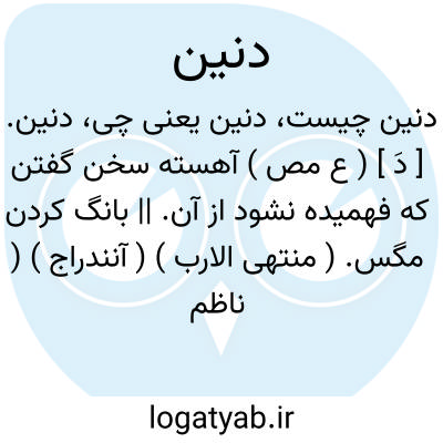 دنین. [ دَ ] ( ع مص ) آهسته سخن گفتن که فهمیده نشود از آن. || بانگ کردن مگس. ( منتهی الارب ) ( آنندراج ) ( ناظم الاطباء ).