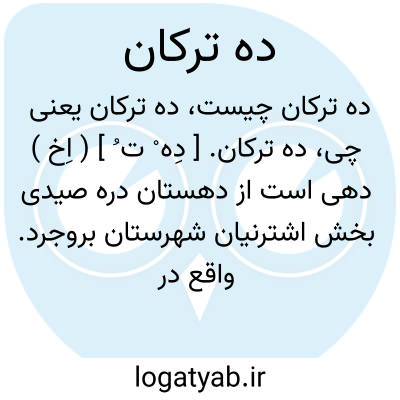 ده ترکان. [ دِه ْ ت ُ ] ( اِخ ) دهی است از دهستان دره صیدی بخش اشترنیان شهرستان بروجرد. واقع در 33هزارگزی شمال اشترنیان. دارای 725 تن سکنه است. آب آن از قنات تأمین می شود. ( از فرهنگ جغرافیایی ایران ج 6 ).