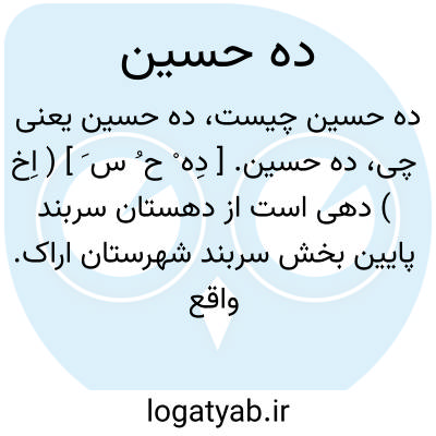 ده حسین. [ دِه ْ ح ُ س َ ] ( اِخ ) دهی است از دهستان سربند پایین بخش سربند شهرستان اراک. واقع در 20هزارگزی جنوب باختری آستانه. دارای 359 تن سکنه است. آب آن از چشمه و قنات تأمین می شود. ( از فرهنگ جغرافیایی ایران ج 2 ).