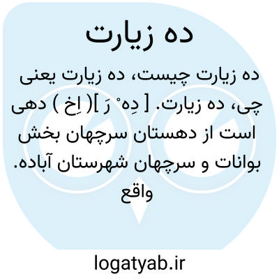 ده زیارت. [ دِه ْ رَ ]( اِخ ) دهی است از دهستان سرچهان بخش بوانات و سرچهان شهرستان آباده. واقع در 82هزارگزی جنوب خاوری سوریان. سکنه آن 96 تن. آب آن از چشمه و قنات تأمین می شود. راه آن فرعی. ( از فرهنگ جغرافیایی ایران ج 7 ).