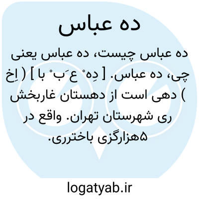 ده عباس. [ دِه ْ ع َب ْ با ] ( اِخ ) دهی است از دهستان غاربخش ری شهرستان تهران. واقع در 5هزارگزی باخترری. سکنه آن 176 تن. آب آن از قنات تأمین می شود. راه آن اتومبیل رو. ( از فرهنگ جغرافیایی ایران ج 1 ).