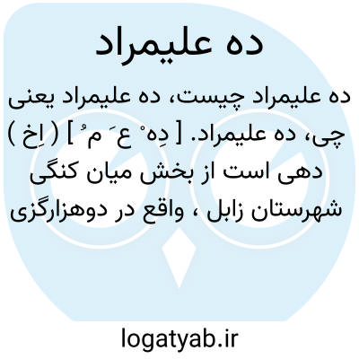 ده علیمراد. [ دِه ْ ع َ م ُ ] ( اِخ ) دهی است از بخش میان کنگی شهرستان زابل، واقع در دوهزارگزی باختر ده دوست محمد. سکنه آن 146 تن. آب آن از رودخانه هیرمند تأمین می شود. ( از فرهنگ جغرافیایی ایران ج 8 ).